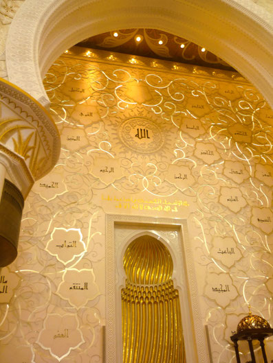 Bild: Christlich ist Jesus das „Bild des unsichtbaren Gottes“ (Kol 1,15), Muslime sehen in ihm den unmittelbaren Vorläufer des nicht darstellbaren Mohammed: „Zwischen mir und ihm gibt es keinen anderen Propheten“ (Bukhārī, Sahīh). Dabei gilt: „Der Koran verneint Jesu Göttlichkeit kategorisch. Er war demnach weder Gott noch der Sohn Gottes…“ (Leila Demiri, Einfach menschlich. Eine islamische Perspektive auf Jesus, in: HerKorr Spezial, Jesus gegen Christus, April 2025, 62f). Islamische Theologie weist „nachdrücklich die Inkarnation zurück. Es ist weder möglich, dass ein Mensch ein Gott wird, noch, dass Gott Mensch wird; dies ist das Hauptprinzip, das der muslimischen Kritik der Inkarnation zugrunde liegt“. Auch wenn der Koran Jesus Titel verleiht wie „der Sohn Marias, Messias, ein Wort von Gott und ein Geist von ihm“ oder „Diener Gottes…, Prophet, Bote, Wunderwirker, ... ein ‚Vorzeichen‘ oder ‚Wissen‘ vom Ende der Zeit“ (ebd.), so ist der koranische Jesus was völlig anderes als der biblische. Scheich-Zayid-Moschee in Abu Dhabi: Ornamentik und Schriftzeichen, kein Bild.