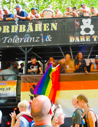 Bild: Die auf sechs Farben umgestaltete Fahne der Homosexuellen-Community und der LGBTQI-Bewegung ist keine Regenbogen-Fahne mit den sieben Farben des Spektrums als Zeichen des Bundes des Schöpfers mit der Schöpfung (Gen 9,8-17). Bei Basilius dem Großen sind die Farben des Regenbogens Bild des Geistes Gottes; Friedrich Weinreb sagt: „Es ist der Geist, der dem Leben die Farben verleiht“ (Wunder der Zeichen – Wunder der Sprache, 1999, 217). Mit diesem Geist Gottes hat die Pride-Parade nichts zu tun, ganz im Gegenteil. Deshalb hat der Kölner Kardinal Rainer Maria Woelki das „proaktive“ Zeigen des LGBTQI-Symbols bei der Einweihung des Erzbischöflichen Bildungscampus am 8. Juli 2025 verboten, woran sich aber viele Eltern und selbst Mitarbeiter des Bistums nicht hielten; geht es ihnen doch um nicht weniger als um einen Kultur- Kampf ihrer Ideologie. CSD-Parade, Hamburg (2018).
